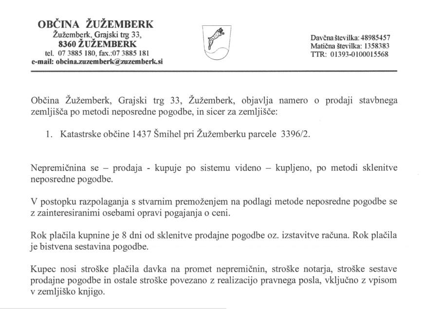Spoštovani, objavljamo odločbi o ukinitvi javnega dobra in nameri o prodaji po metodi neposredne pogodbe. Namera 3396_2 1437 Namera 3396_3 1437 Ukinitev javnega dobra 3396_2 1437 […]